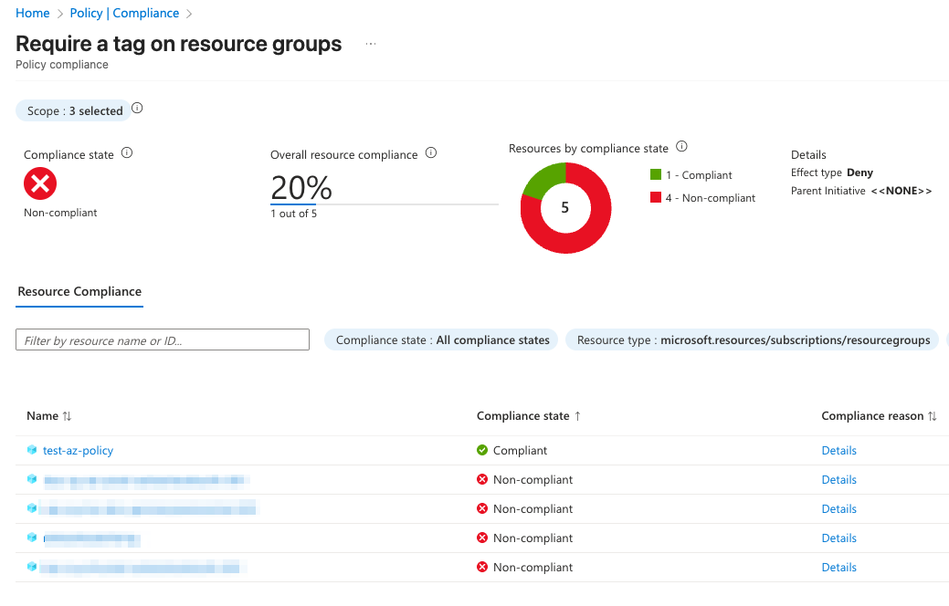 If you create the resource group and include the costCenter tag (for example costCenter=12345), the portal will allow the deployment and after the evaluation window (typically a few minutes), the resource group will be reported as compliant in Policy > Compliance. You can also verify the tag directly in the resource group’s Tags pane to confirm the expected configuration.