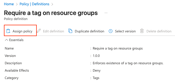 Below is a concise, practical walkthrough to create a simple policy in the Azure Portal that requires a specific tag (for example “costCenter”) on the resource group.