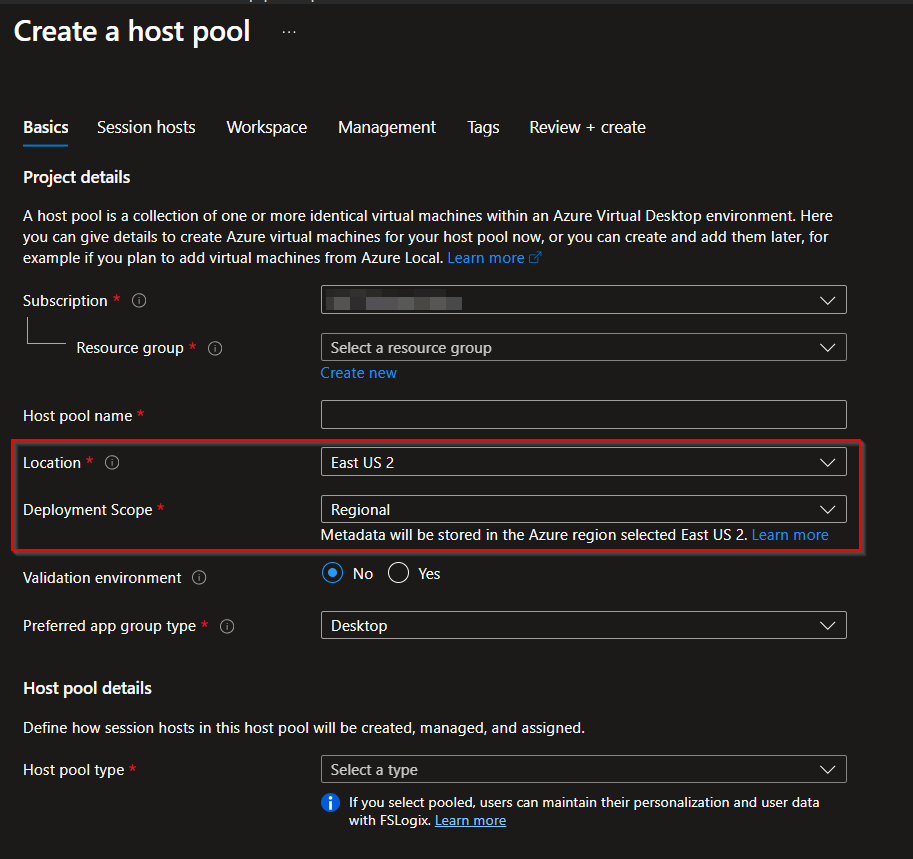 During this public preview the regional infrastructure is being rolled out gradually. Initially, regional host pools are available in East US 2 and Central US (as of updating this blog post on the 3rd of February 2026). Additional regions will be enabled over time as Microsoft completes regional deployments.