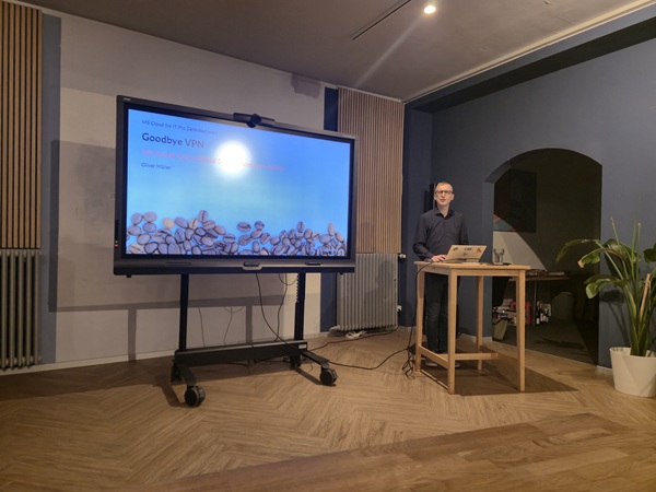 Oliver Müller opened the evening and explained why classic VPNs, especially point‑to‑site VPNs, often no longer meet today’s requirements. Remote work, cloud workloads and targeted attacks on SSL‑VPNs have changed the threat model of the traditional corporate network. Oliver therefore presented Global Secure Access (short GSA) as a modern alternative. GSA is an Entra‑native solution built on Zero‑Trust principles.