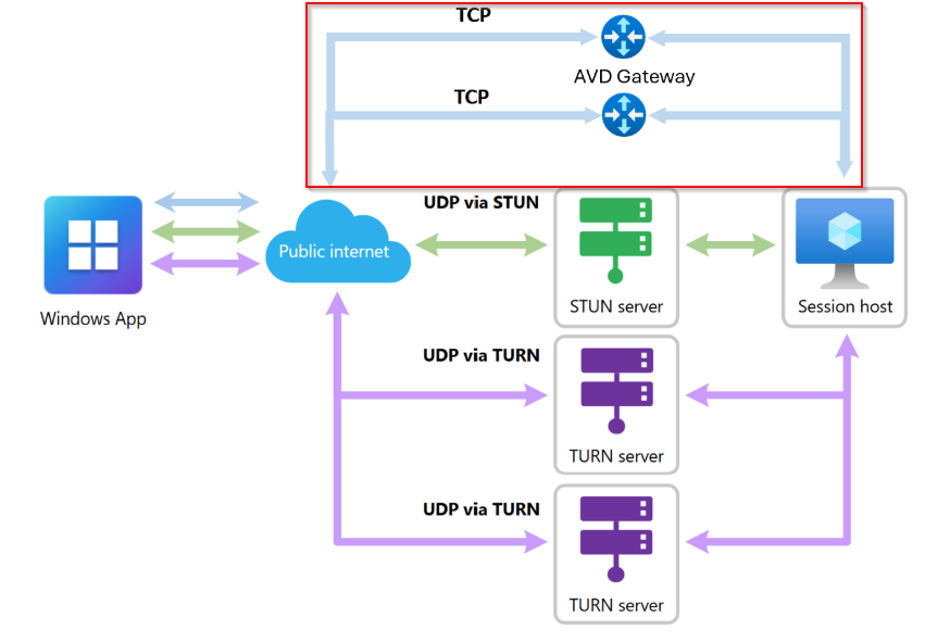- TCP via Reverse Connect over the AVD gateways (newly redundant in preview)