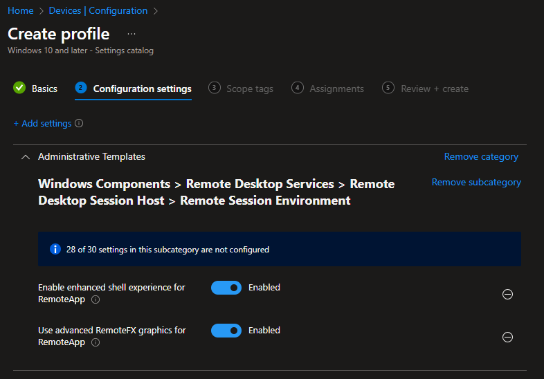 - Local Computer Policy → Computer Configuration → Administrative Templates → Windows Components → Remote Desktop Services → Remote Desktop Session Host → Remote Session Environment → Enable enhanced shell experience for RemoteApp