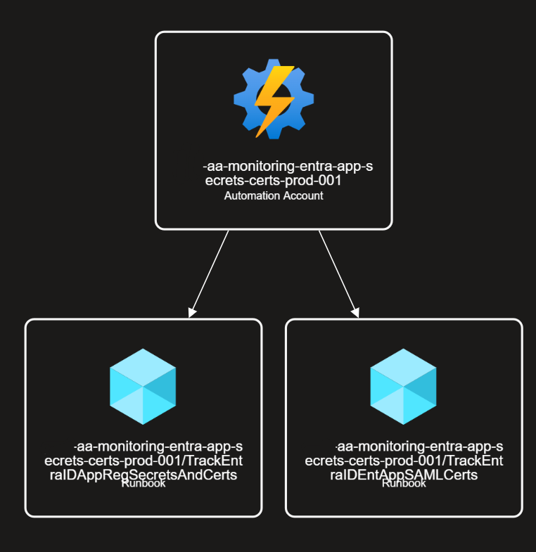 I used both posts as the foundation for my solution, combined their approaches, and extended the PowerShell scripts to include SAML certificate checks, so my customers get a single monitoring solution. The result is an Azure Automation Account that runs scheduled PowerShell runbooks which call (with a service principal) Microsoft Graph, enumerate app registrations and enterprise applications, and send early‑warning emails when client secrets or certificates are nearing expiration.